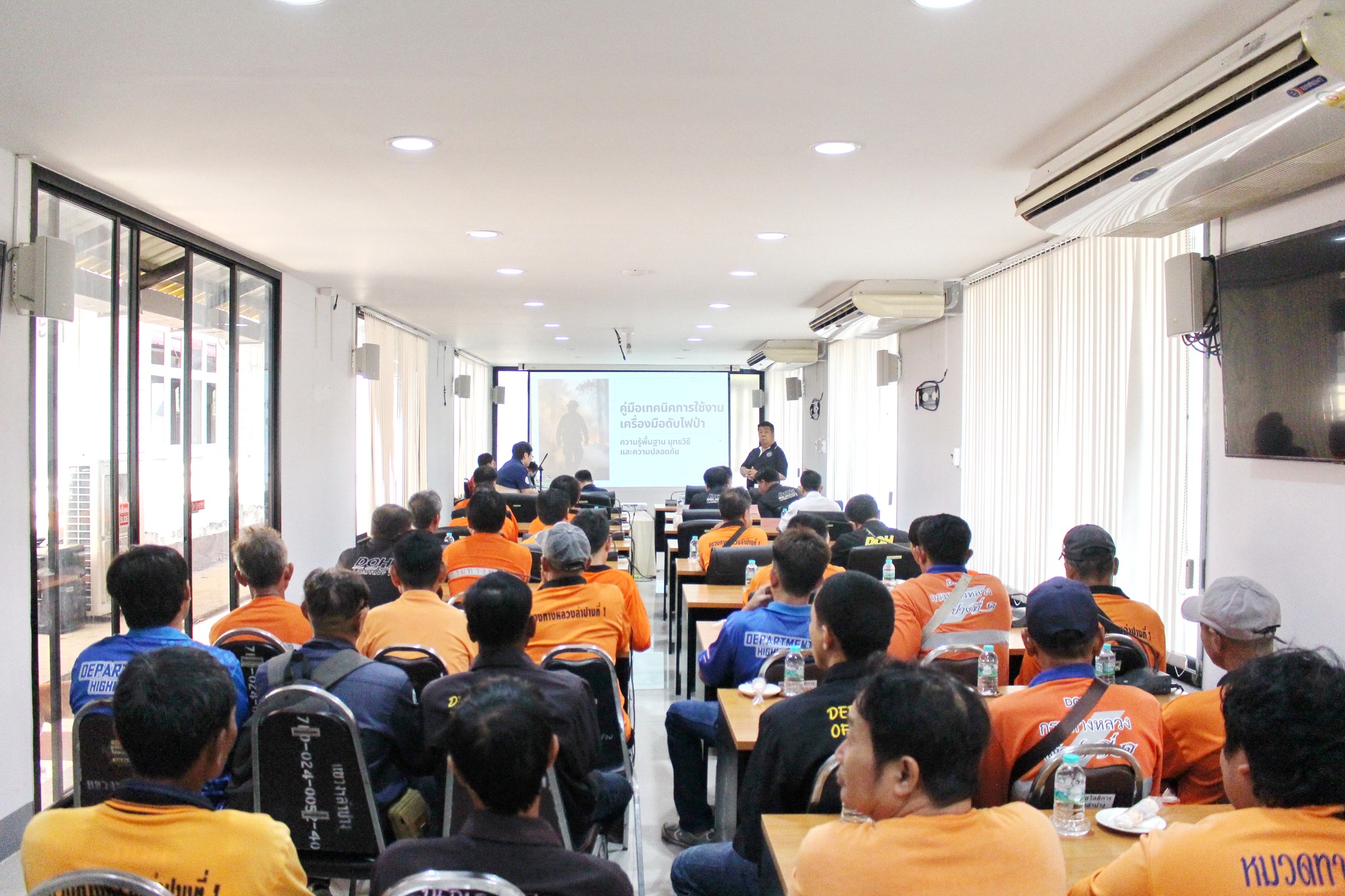 เข้าร่วมการอบรม การดับไฟป่าในเขตข้างทางหลวงฯ จากวิทยากร เจ้าหน้าที่สถานีควบคุมไฟป่า เขลางค์ – พระบาท เพื่อนำความรู้พื้นฐาน ยุทธวิธี และความปลอดภัยในการปฏิบัติงาน
