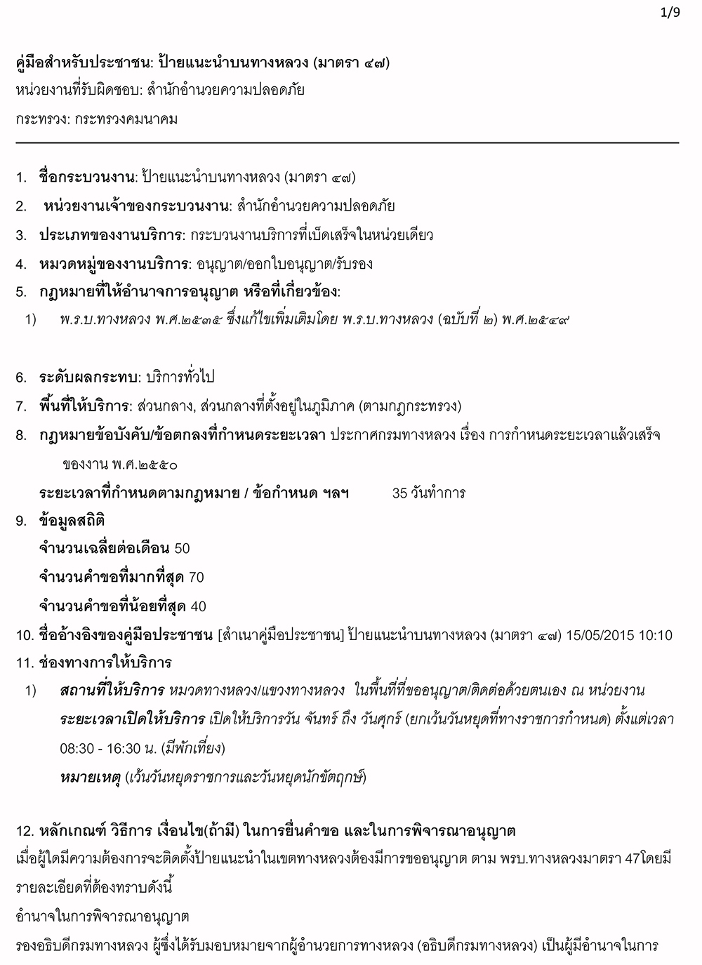 10. ชื่ออ้างอิงของคู่มือประชาชน [สำเนาคู่มือประชาชน] ป้ายแนะนำบนทางหลวง (มาตรา ๔๗) 15/05/2015 10:10