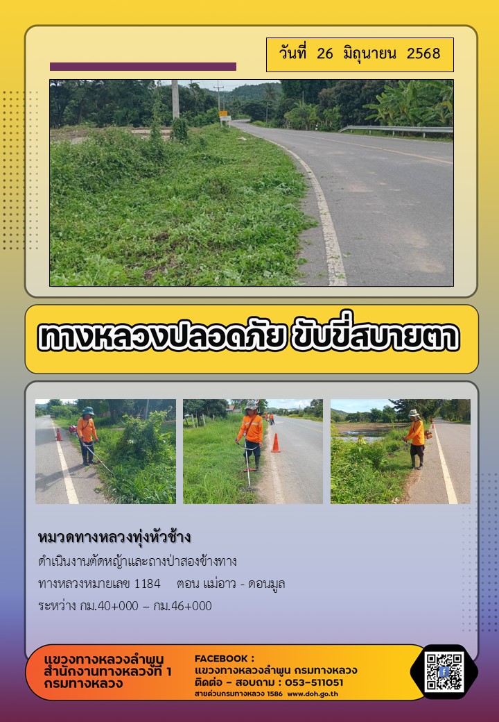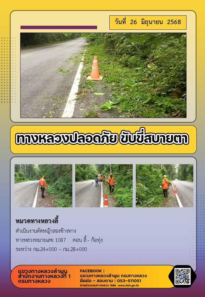 ข้อมูลภาพกิจกรรม : ทางหลวงปลอดภัย ขับขี่สบายตา ( 26 มิถุนายน 2568 )