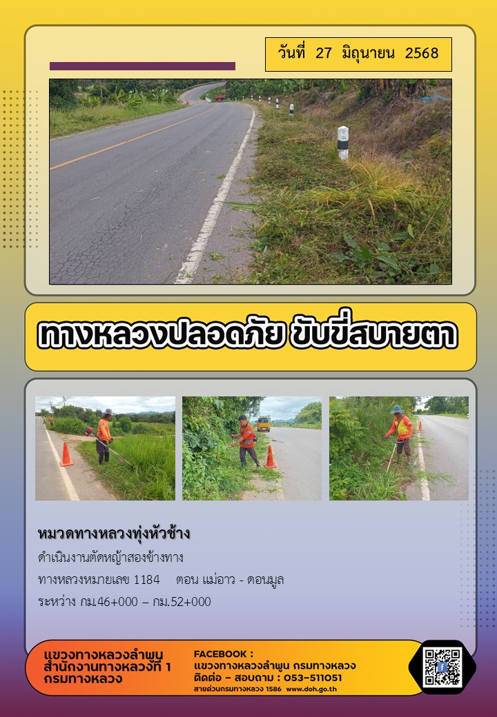 ข้อมูลภาพกิจกรรม : ทางหลวงปลอดภัย ขับขี่สบายตา ( 27 มิถุนายน 2568 )