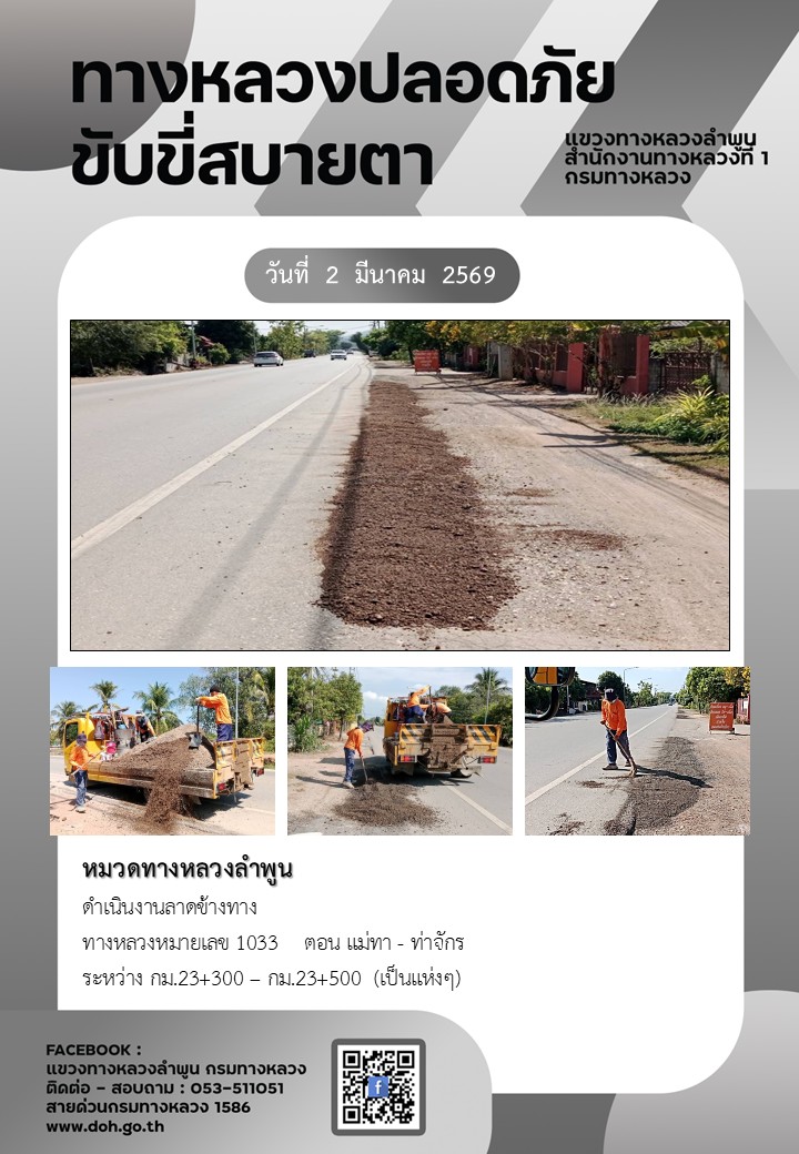 ข้อมูลภาพกิจกรรม : ทางหลวงปลอดภัย ขับขี่สบายตา ( 2 มีนาคม 2569 )
